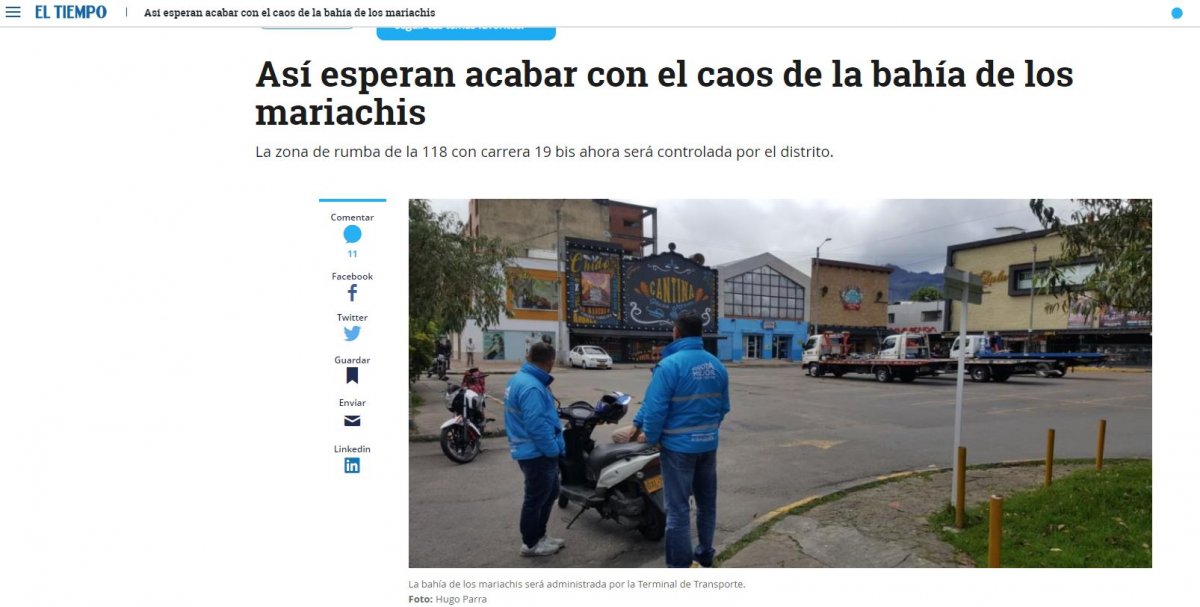Son por lo menos 20 derechos de petición los que han presentado los ciudadanos para que las autoridades locales y distritales tomen el control y acaben con el caos en la bahía de los mariachis, en la calle 118 con carrera 19 bis, en Santa Bárbara Occidental, en el norte de la ciudad.