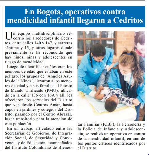 En Bogotá, operativos contra la mendicidad infantil llegaron a Cedritos
