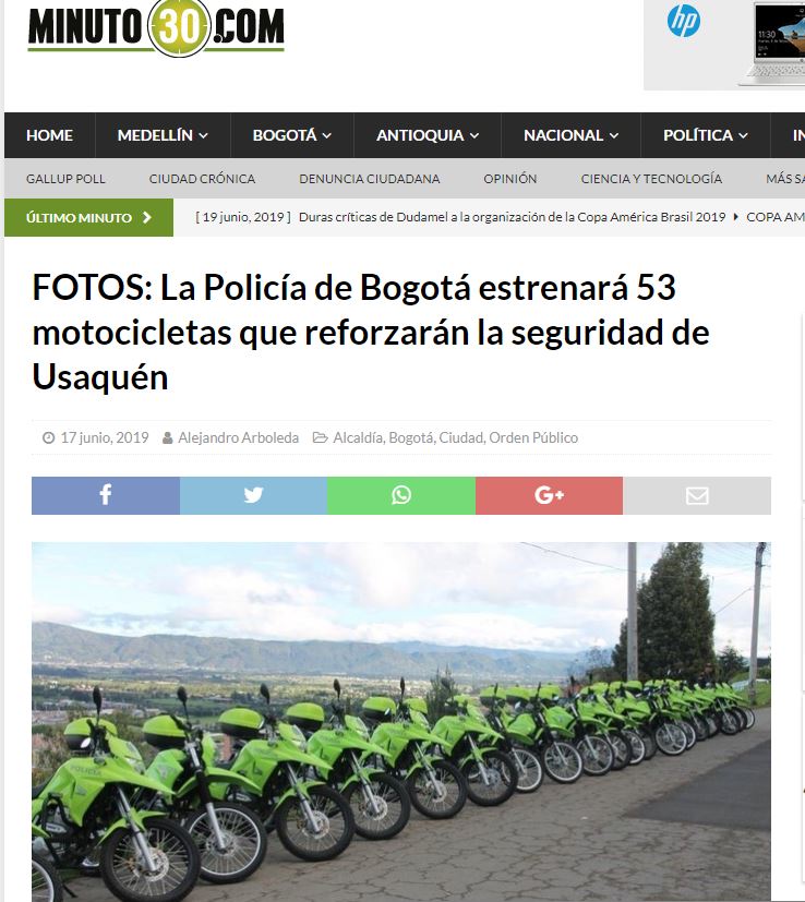 La Alcaldía de Bogotá confirmó que entregó 53 motocicletas que estarán destinadas a labores de patrullaje para todos los policías que a diario circulan por las calles de la ciudad adscritos al Modelo Nacional de Vigilancia por Cuadrantes.
