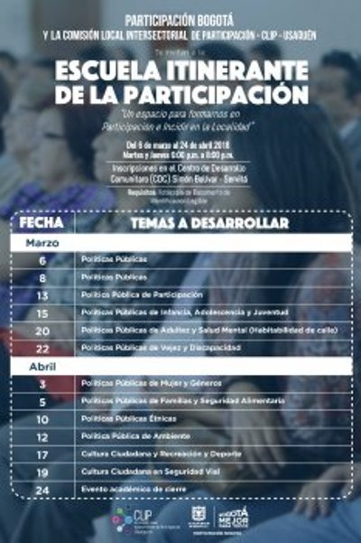 Organiza Participación Bogotá y la Comisión Local Intersectorial de Participación, Clip, Usaquén (adjunto pieza digital).