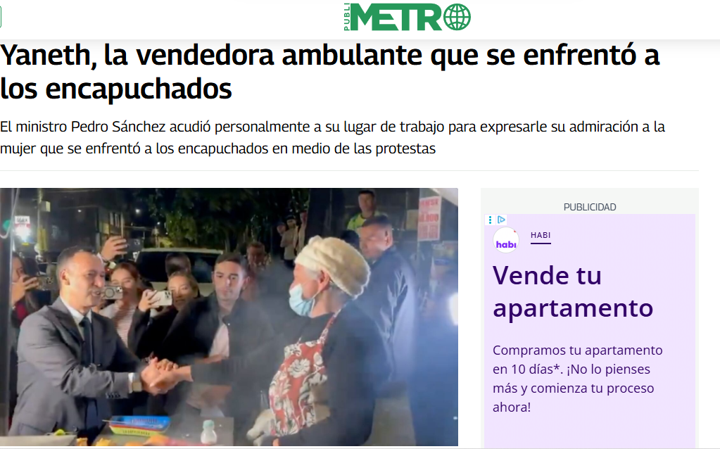 El ministro de Defensa, Pedro Sánchez, visitó a doña Yaneth, la vendedora ambulante que se enfrentó a los encapuchados