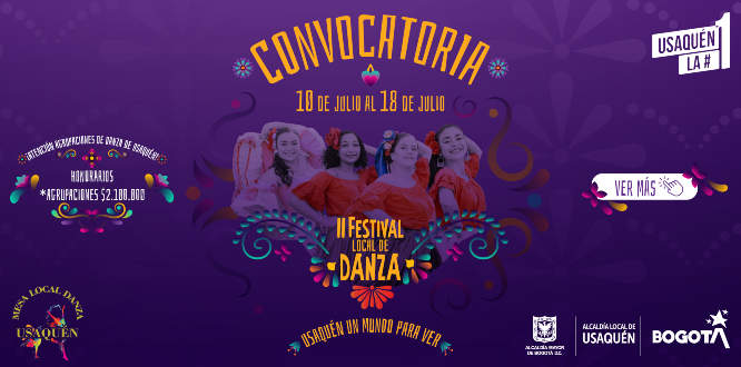 Bogotá D.C., 8 de julio de 2023. La Alcaldía Local de Usaquén abre la convocatoria para seleccionar seis (6) agrupaciones de danza con trayectoria y residencia en la localidad, que quieran presentar su talento el próximo domingo 30 de julio en el Coliseo Servitá, como parte articulada del Segundo Festival Local de Danza, Usaquén un Mundo para Ver.