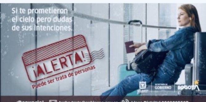 *La invitación es a denunciar los posibles casos de Trata de Personas al correo lucha.trata@gobierno.gov.co y la línea Distrital 350-3085507 y a manifestar su rechazo hacia uno de los peores crímenes contra la libertad humana con el #AlertaEsoEsTrata