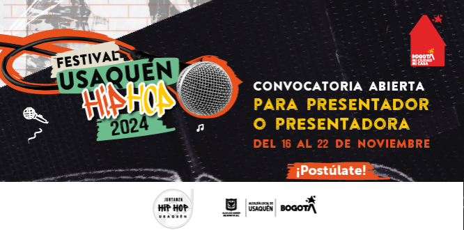 Bogotá, 18 de noviembre de 2024. La Alcaldía Local de Usaquén invita a residentes de la localidad a postularse para ser el o la presentadora del Tercer Festival Hip Hop Usaquén, que se llevará a cabo el próximo 8 de diciembre de 2024 en el Teatro Servitá. Este festival tiene como objetivo reconocer la escena del Hip Hop, fomentando la inclusión social, la creatividad y ofreciendo un espacio de encuentro para jóvenes de la localidad. Además, será una plataforma para que los y las artistas locales puedan compartir su talento.