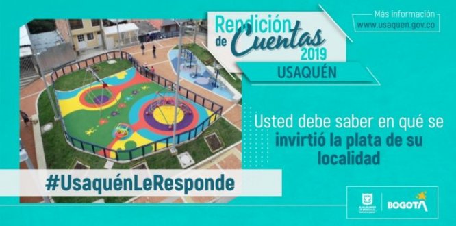 Con el acompañamiento de la Veeduría Distrital, la Alcaldía Local de Usaquén rendirá cuentas a la ciudadanía frente al cumplimiento de la gestión 2019. Para ello, es muy importante que la gente de los barrios de nuestra localidad, haciendo uso de las redes sociales y la tecnología con el #UsaquénLeResponde pregunten por los temas que les sean de mayor interés en cuanto a la gestión de la inversión del Fondo de Desarrollo Local de Usaquén. Sus inquietudes se recibirán entre el 4 y 16 de mayo.